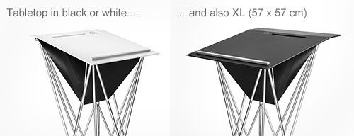 Tops: 49 x 49 cm or 57 x 57 cm, black or white